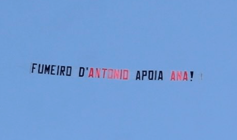 Esta tarde foi Ana quem foi surpreendida com uma mensagem que sobrevoou a casa mais vigiada do país: “O Fumeiro D’António apoia a Ana.”