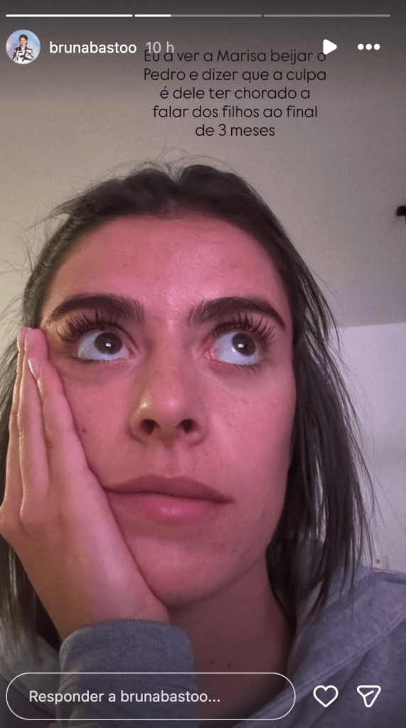 “Eu a ver a Marisa beijar o Pedro e dizer que a culpa é dele ter chorado a falar dos filhos ao final de 3 meses”, começou por dizer Bruna, que de seguida parabenizou Inês: “A jogar o jogo, já lá vão 3”.
