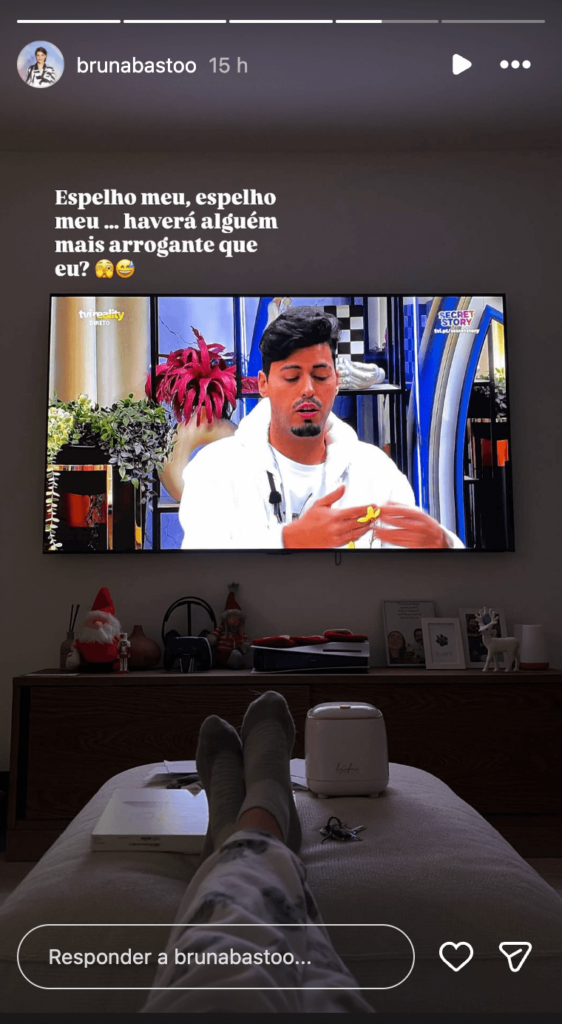 “Espelho meu, espelho meu … haverá alguém mais arrogante que eu?”, atirou Bruna. Recorde-se que já durante a sua participação na casa mais vigiada do país, Bruna entrou várias vezes em confronto com Leandro e ao acusou de se achar superior aos outros colegas.