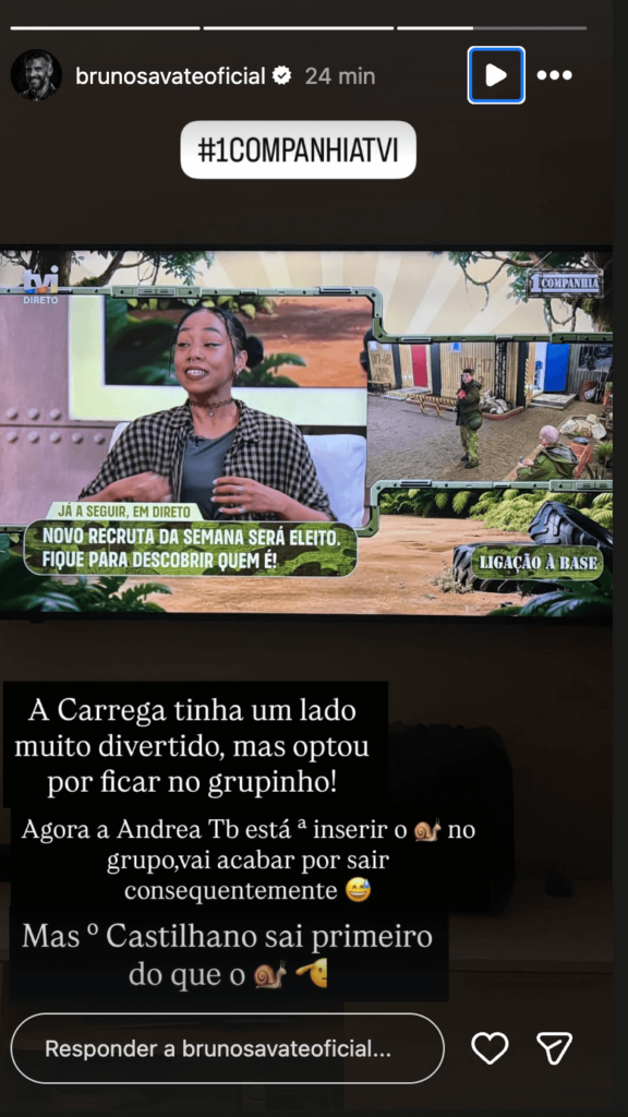 Mas a opinião mais contundente ficou reservada para Rodrigo Castelhano, atualmente nomeado. Bruno Savate foi direto: “Mas o Castelhano sai primeiro do que o caracol”, deixando claro que acredita que o modelo será o próximo a abandonar a base militar de Bucelas.