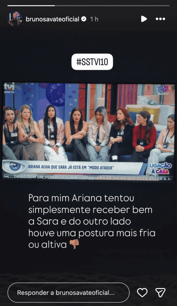 Bruno Savate analisou o episódio e deixou clara a sua opinião sobre o comportamento de cada uma das envolvidas: “Para mim Ariana tentou simplesmente receber bem a Sara e do outro lado houve uma postura mais fria ou altiva.”