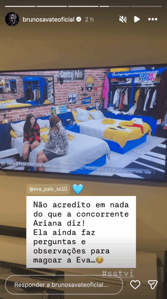 Bruno Savate tem acompanhado de perto toda a polémica do Secret Story 10 e esta tarde voltou a não se ficar, saindo em defesa de Eva e disparando contra Ariana depois de um vídeo que está a dar muito que falar nas redes sociais.