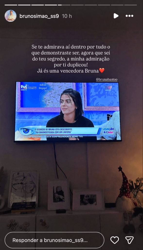 “Se te admirava aí dentro por tudo o que demonstraste ser, agora que sei do teu segredo, a minha admiração por ti duplicou! Já és uma vencedora Bruna”, reagiu Bruno Simão nas suas redes sociais.