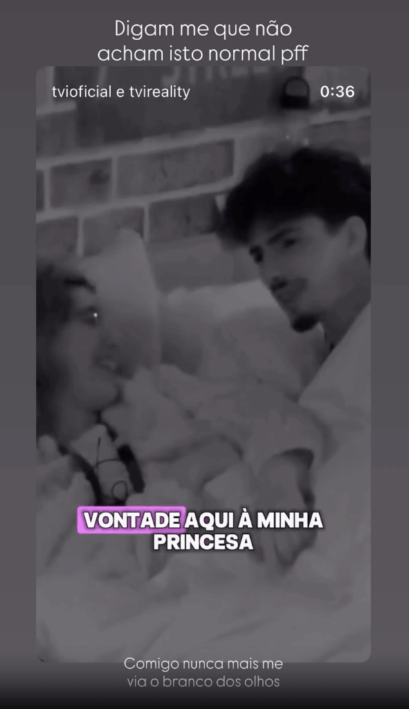 Miranda não escondeu o choque com as imagens do beijo e foi direta na reação: “Digam-me que não acham isto normal pff. Comigo nunca mais me via o branco dos olhos.”