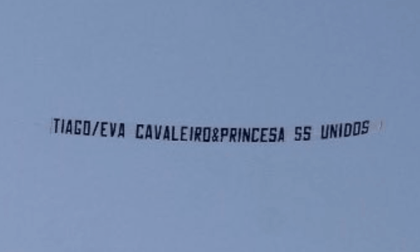 Pouco depois sobrevoou outro avião, desta vez com uma mensagem exclusiva para Eva e que chega num momento mais do que oportuno. Muito provavelmente relacionada com o momento desta quinta-feira em que Eva desabou em lágrimas e foi reconfortada por Diogo num abraço que deixou os fãs da jovem terapeuta preocupados, ao ponto de lhe mandar um alerta.