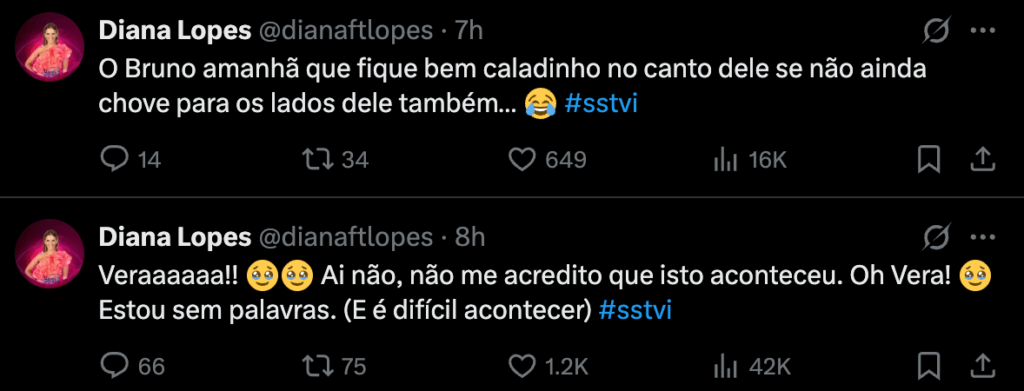 Diana Lopes, comentadora oficial do programa, também já reagiu, e mostrou-se em choque com o desfecho de toda a polémica entre Vera e Dylan.