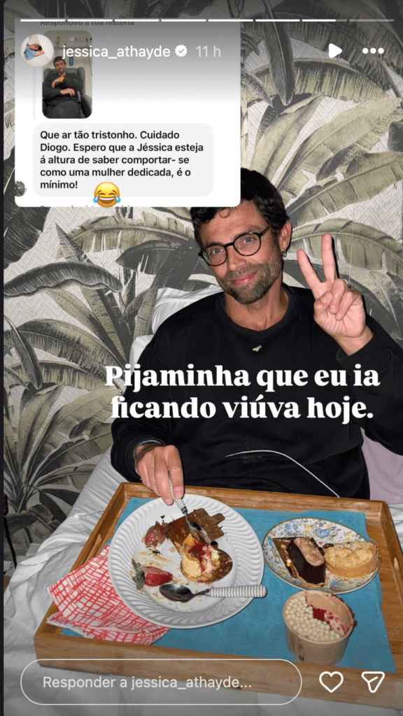 “Já levou pontos, está todo anestesiado, mas está bem dispoto. Lixou-nos op domingo, mas está bem disposto”, acrescentou Jéssica no vídeo que partilhou onde mostrou Diogo sorridente, após ter levado pontos.