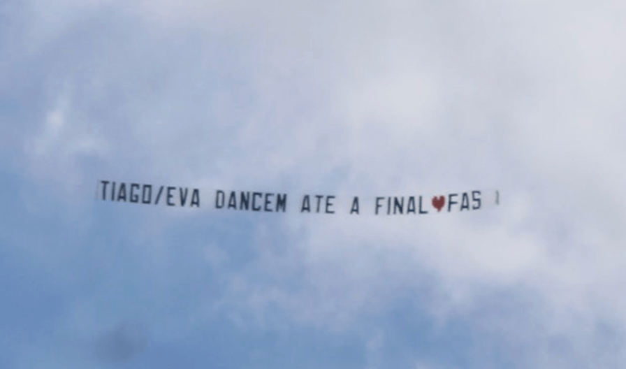 Na faixa do avião podia ler-se uma mensagem de apoio aos dois concorrentes: “Tiago / Eva DANCEM ATÉ À FINAL / FÃS”.
