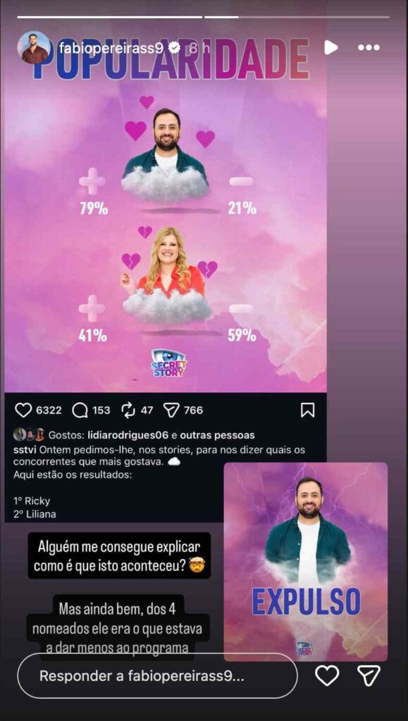 Fábio Pereira não escondeu o choque com a expulsão de Ricky do Secret Story 10 e questionou nas redes sociais como foi possível o concorrente mais popular da primeira semana acabar por ser o segundo expulso da edição.
