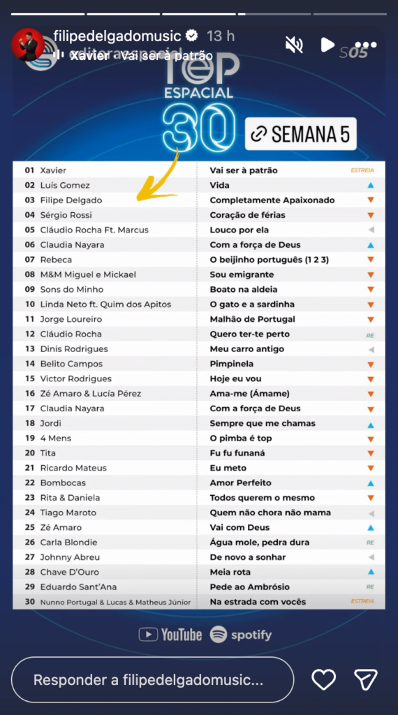 A equipa que gere a carreira do cantor já reagiu ao impacto positivo do lançamento, confirmando que a música alcançou o Top 3 das mais ouvidas em Portugal. Este feito destaca a capacidade de Filipe Delgado em conciliar a sua presença no reality show da TVI com o crescimento da sua carreira artística.