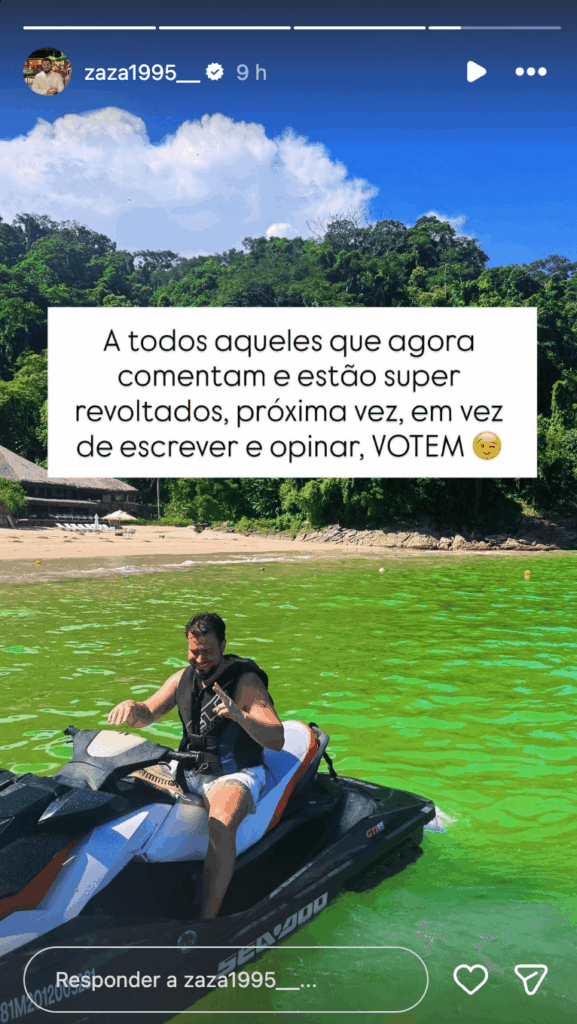 A noite não terminou como Zaza desejava, mas ainda assim, João Santos acabou por abandonar o jogo com 17% dos votos, tal como Inês Morais e Ricardo João tinham previsto. A opinião polémica do comentador não agradou a muitos fãs do reality show, que não tardaram a fazer-se ouvir. Zaza não se ficou e respondeu com uma série de recadinhos que estão a dar muito que falar.
