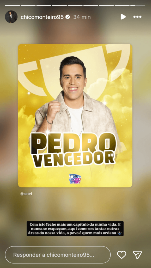 A vitória de Pedro Jorge tem gerado imensas reações nas redes sociais e Francisco Monteiro, comentador do formato já reagiu ao desfecho da nona edição da Casa dos Segredos. O comentador da TVI despediu-se do formato e relembrou que no fim é ‘o povo quem mais ordena’, recordando, que Pedro Jorge foi desde o inicio do programa o favorito do público.