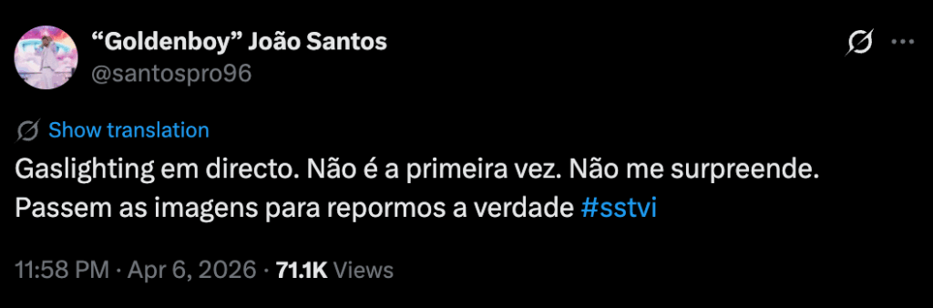 Um fã foi mais longe e deixou um apelo direto a João para que ajude Eva a perceber que não está sozinha: “João, precisamos da tua ajuda para dar apoio à Eva. Temos que enviar um avião para lhe dar força e ela saber que não é tudo da cabeça dela.” Outro espectador resumiu o sentimento geral com uma frase que está a circular nas redes sociais: “Isto revolta-me tanto… estão a usar a fragilidade de uma miúda por audiência.”