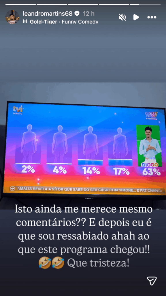 O ex-concorrente, que tem comentado semana após semana os momentos mais marcantes do programa, mostrou-se visivelmente desagradado com o resultado e não poupou nas palavras deixando uma farpa que resume bem a frustração: “Isto ainda me merece mesmo comentários?? E depois eu é que sou ressabiado ahah ao que este programa chegou!! Que tristeza!”