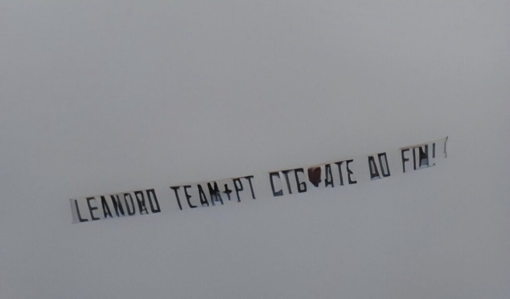 “Leandro Team + PT contigo. Até ao fim.”, podia ler-se na faixa de avião.