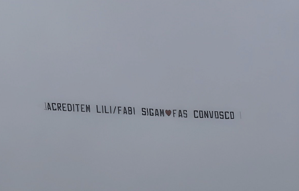 “Acreditem Lili / Fabi. Sigam o coração. Fãs convosco”, podia ler-se na faixa de avião.