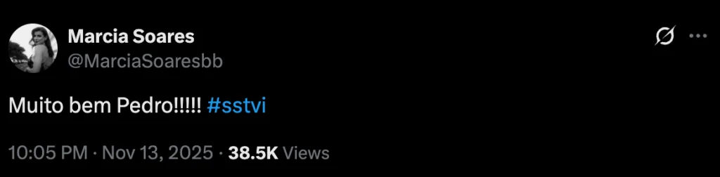 Cá fora, as reações não tardaram e muitos aplaudiram a decisão de Pedro Jorge, incluindo, Marcia Soares, que reagiu de imediato nas suas redes sociais.