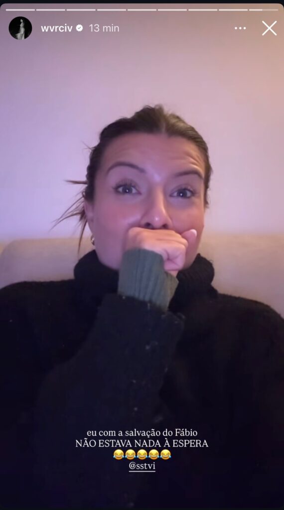 “NUNCAAAAAAA, em momento algum da minha vida pensei alguma vez ficar tão feliz com a salvação do Fábio hahah”, atirou Marcia Soares. No Instagram, Marcia mostrou a sua reação à salvação de Fábio e com ar de espanto no rosto, acrescentou na legenda: “Não estava nada à espera.”, acompanhado de vários emojis a chorar a rir.