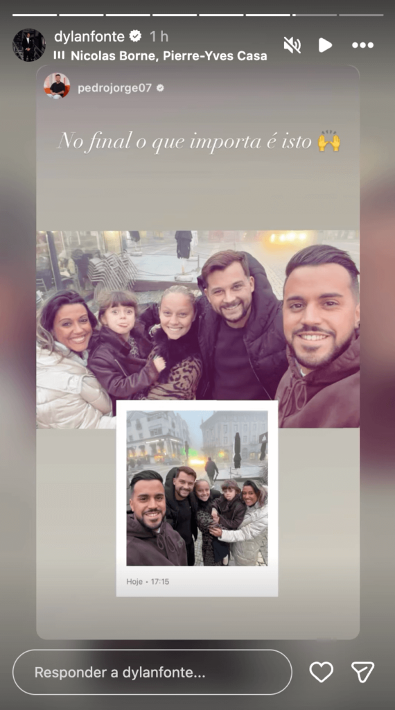“No final o que importa é isto”, pode ler-se na legenda dos registos partilhados pelos ex-concorrentes do Secret Story, onde se pode ver Pedro com Marisa e os filhos, ao lado de Inês Gama e Dylan Fonte.
