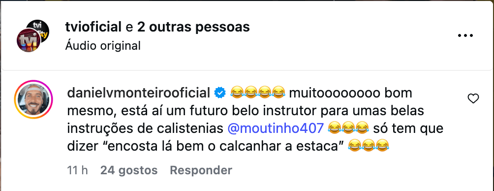O algarvio reagiu ao momento viral de Filipe Delgado, e na caixa de comentários podia ver-se vários emojis a chorar a rir. Recorde-se que Miguel Vicente já tinha confessado que Filipe é um dos seus recrutas favoritos da 1ª Companhia.
