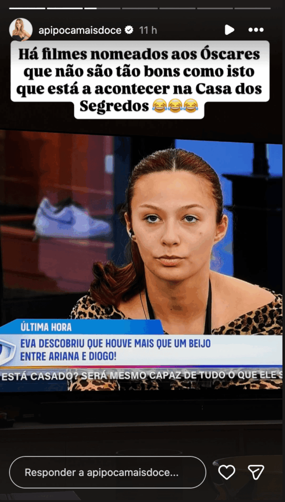 A descoberta do segredo de Eva abalou o Secret Story 10 e deixou as redes sociais em ebulição. Depois de se saber que Eva e Diogo são namorados cá fora, a casa revoltou-se contra o casal, que usou Ariana para proteger o segredo durante semanas. A onda de reações não para de crescer e Ana Garcia Martins, mais conhecida como “Pipoca Mais Doce”, também não ficou indiferente ao espetáculo.