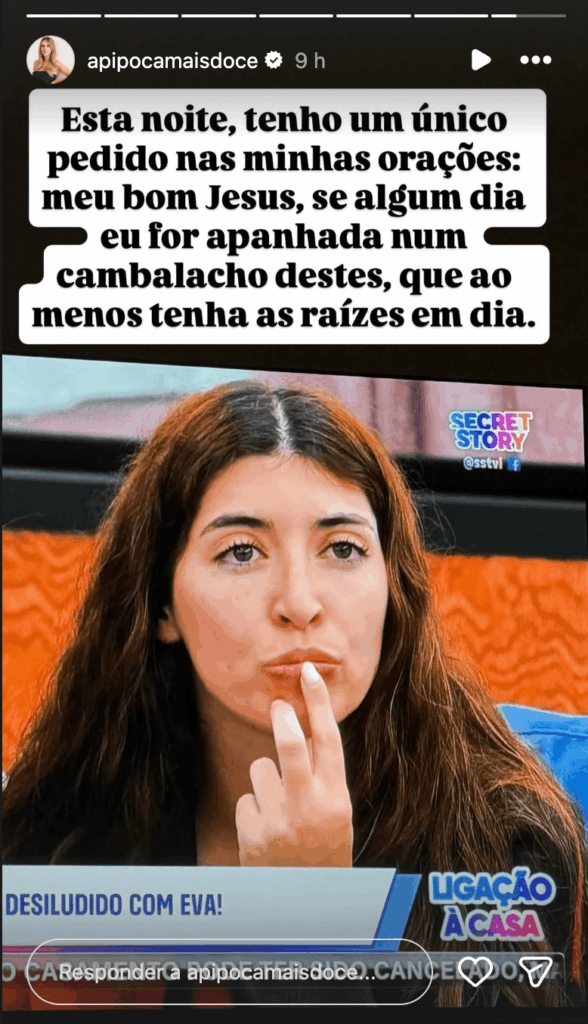 Para rematar, Pipoca recorreu à ironia que lhe é característica e encerrou o assunto com uma oração que dificilmente alguém vai esquecer: “Esta noite, tenho um único pedido nas minhas orações: meu bom Jesus, se algum dia eu for apanhada num cambalacho destes, que ao menos tenha as raízes em dia.”