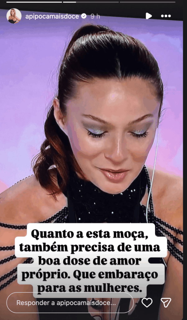 Sobre Eva, a ‘Pipoca Mais Doce’ foi igualmente frontal, sem poupar a concorrente de Ovar nas críticas: “Quanto a esta moça, também precisa de uma boa dose de amor próprio. Que embaraço para as mulheres.”