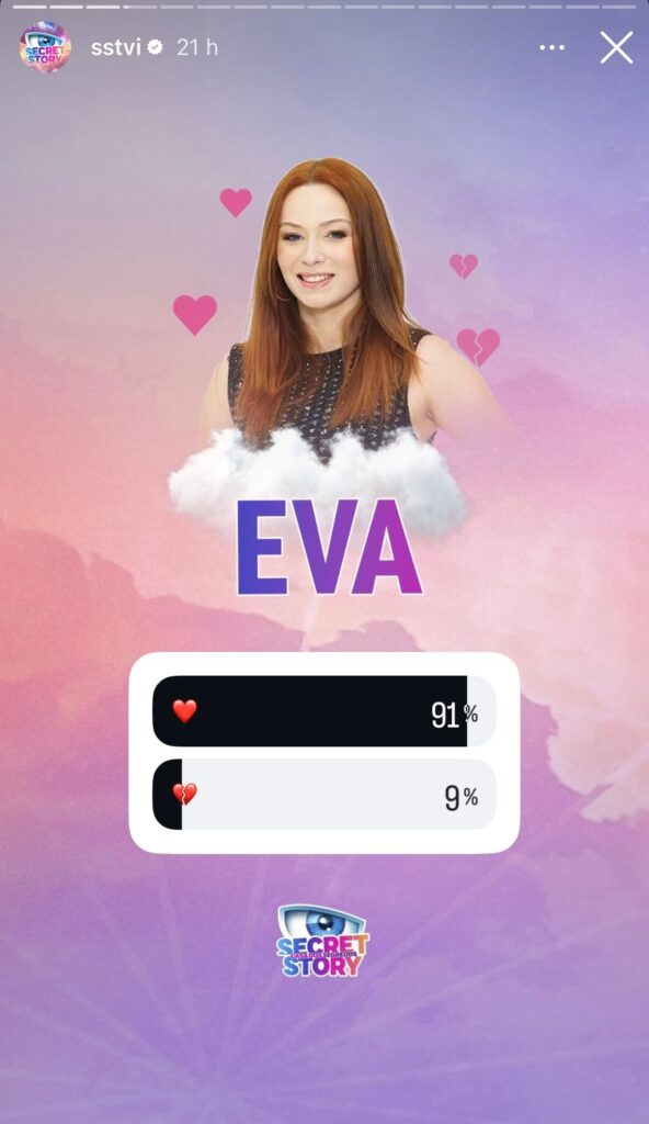 Eva e Tiago lideram de forma destacada, com 91% e 90% de gostos respetivamente, numa diferença de apenas 1 ponto percentual que os torna nos dois concorrentes mais queridos desta semana. Um resultado que não surpreende tendo em conta a cumplicidade que os dois têm demonstrado dentro da casa e o apoio que têm recebido cá fora, incluindo os vários aviões de apoio que sobrevoaram a Malveira esta semana. Liliana surge em terceiro lugar com 73%. Jéssica aparece em quarto lugar com 64%, mantendo uma posição sólida na reta final desta edição.