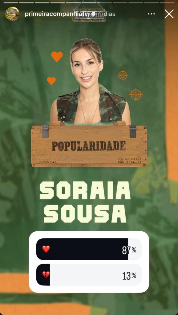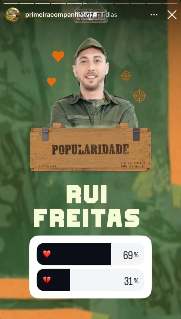As votações continuam abertas e os fãs do reality ainda têm mais algumas horas para votar, mas fomos espreitar os primeiros resultados do ranking de popularidade que decorre no Instagram da página oficial da 1ª Companhia e os resultados já deixam antever quem são os grandes protagonistas a menos de 48 horas da grande final do reality show.