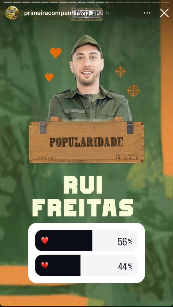 As votações continuam abertas e os fãs do reality ainda têm mais algumas horas para votar, mas fomos espreitar os primeiros resultados do ranking de popularidade que decorre no Instagram da página oficial da 1ª Companhia e os resultados já deixam antever quem são os grandes protagonistas da semana.
