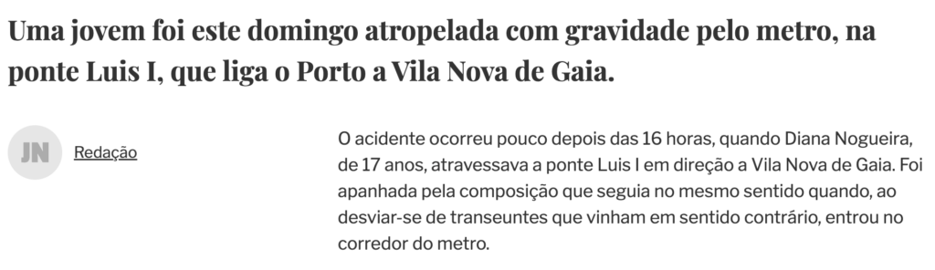 “Fui atropelado pelo metro” – Este segredo pertence a Diana Dora, a picheleira de 32 anos natural de Vila Nova de Gaia. A informação foi descoberta através de uma notícia do Jornal de Notícias que data de 2012, confirmando o dramático episódio que marcou a vida da concorrente. Diana foi atropelada pelo metro aos 17 anos quando atravessava a icónica Ponte Luís I em direção a Vila Nova de Gaia. O acidente, que poderia ter tido consequências fatais, faz parte do percurso de vida de Diana e contribuiu certamente para moldá-la na mulher de garra e resiliente que se descreve hoje. A descoberta deste segredo mostra o quão profunda pode ser a investigação dos fãs do Secret Story e revela um momento traumático que Diana carrega consigo há mais de uma década.
